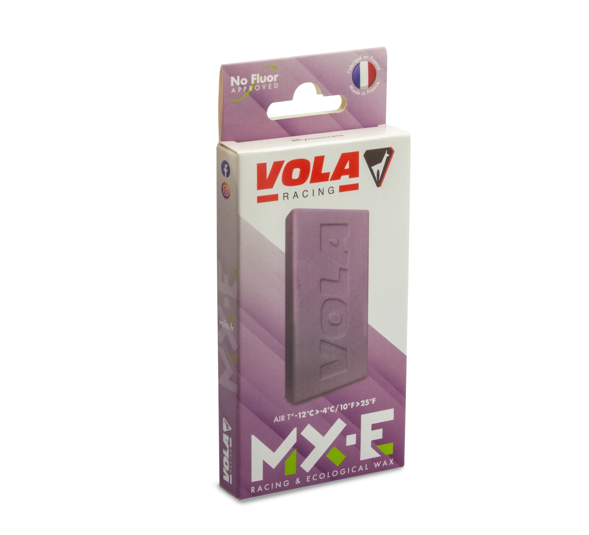 VOLA MX-E is an eco-responsible competition wax offering excellent gliding performance. This hybrid range, without fluorine, contains more than 50% of raw materials of vegetable and animal origin. Its recycled cardboard packaging is 100% biodegradable and recyclable. The MX-E range offers to all skiers a range of ecological waxes with similar performance to traditional hydrocarbon-based waxes.